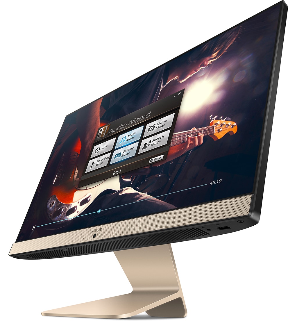 صفحه نمایش NanoEdge در Vivo AiO V222 دارای زاویه دید گسترده 178 درجه و طیف رنگی 100٪ sRGB برای رنگ های زنده و واقع گرایانه است. همچنین شامل فناوری انحصاری ASUS Splendid برای اطمینان از رنگ های واقعی است - میتواند تصویری از غروب آفتاب ، آسمان آبی شفاف یا رنگ پوست باشد. وضوح تصویر Full HD آن با فناوری انحصاری ASUS Tru2Life Video بیشتر می شود ، که وضوح و کنتراست را برای هر پیکسل در هر فریم ویدئو برای تصاویر واضح تر و واقعی تر بهینه می کند. پوشش مات ضد تابش خیره کننده ، انعکاس آزار دهنده را برای حداکثر راحتی دید به حداقل می رساند.