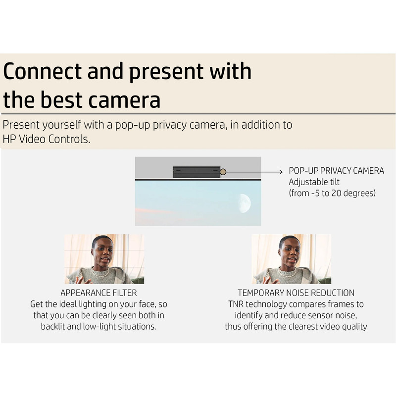 وبکم پاپآپ HD 720p با قابلیت تنظیم زاویه و شیب، همراه با دو میکروفون استریو محیطی و فناوری کاهش نویز محیطی، شرایط ایدهآلی برای تماسهای ویدئویی یا جلسات آنلاین فراهم میسازد.