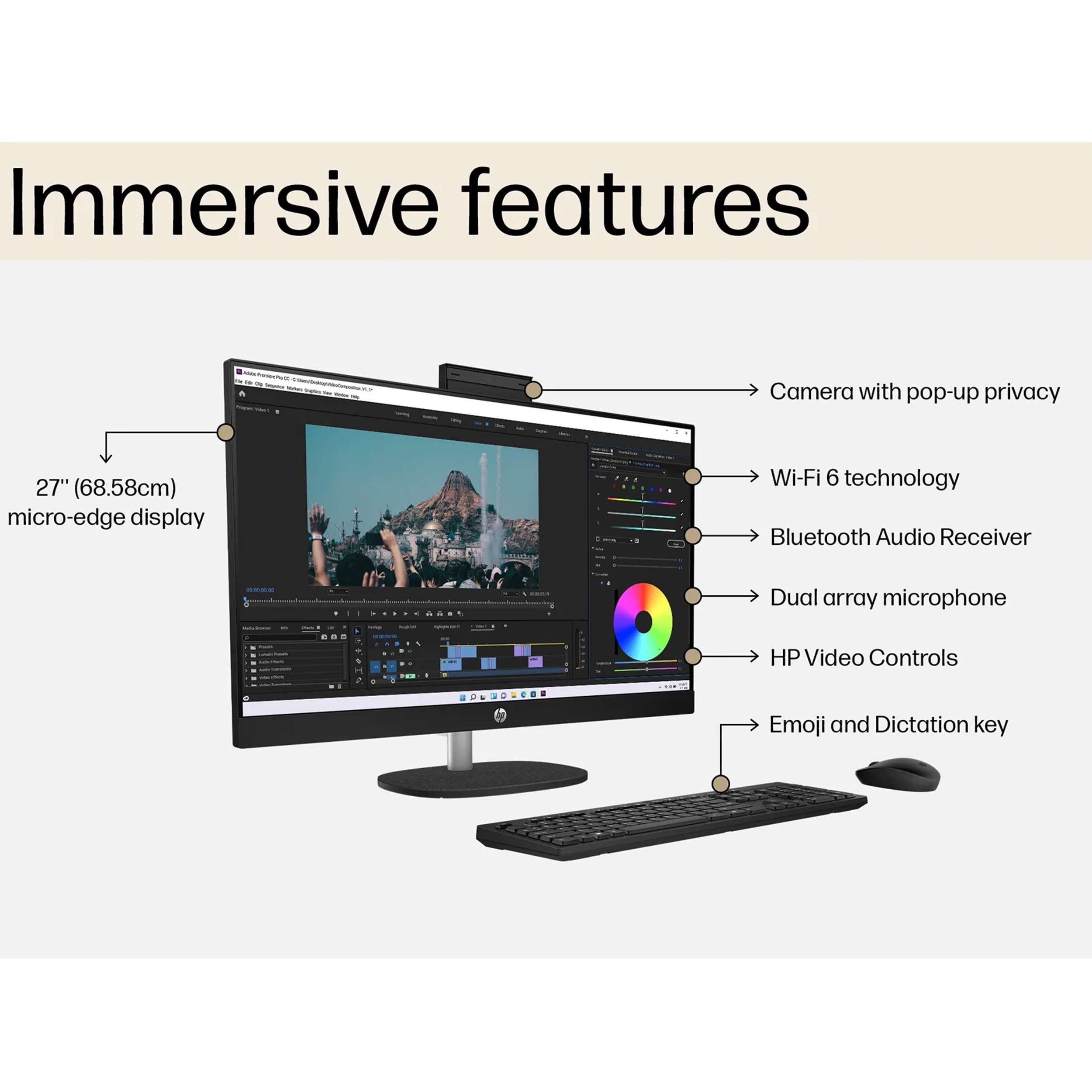 - برای تسهیل همکاری و ارتباطات، این کامپیوتر مجهز به دوربین پاپآپ با قابلیت شیبدهی برای حفظ حریم خصوصی، میکروفونهای دوگانه و فناوری پیشرفته کاهش نویز است.