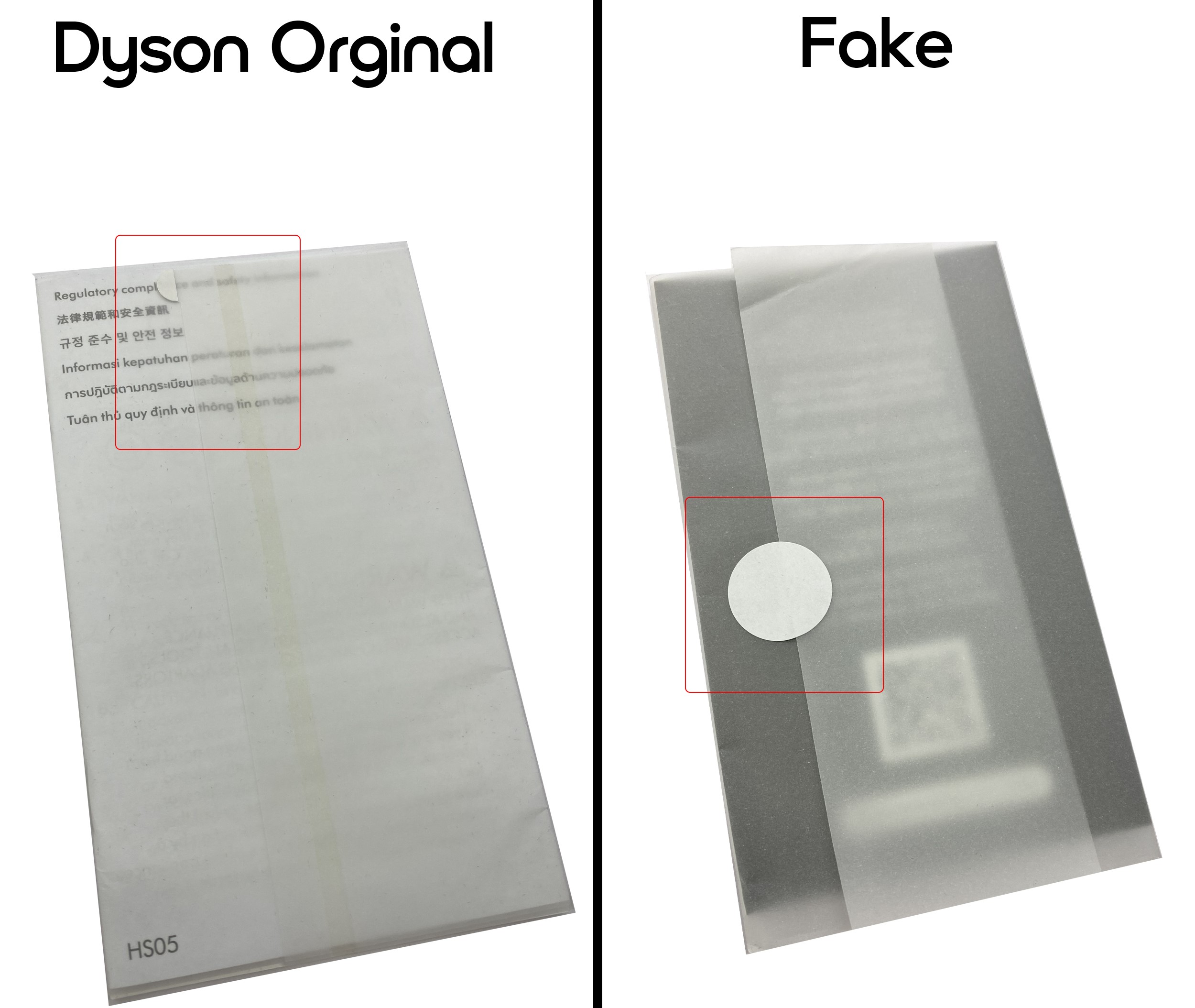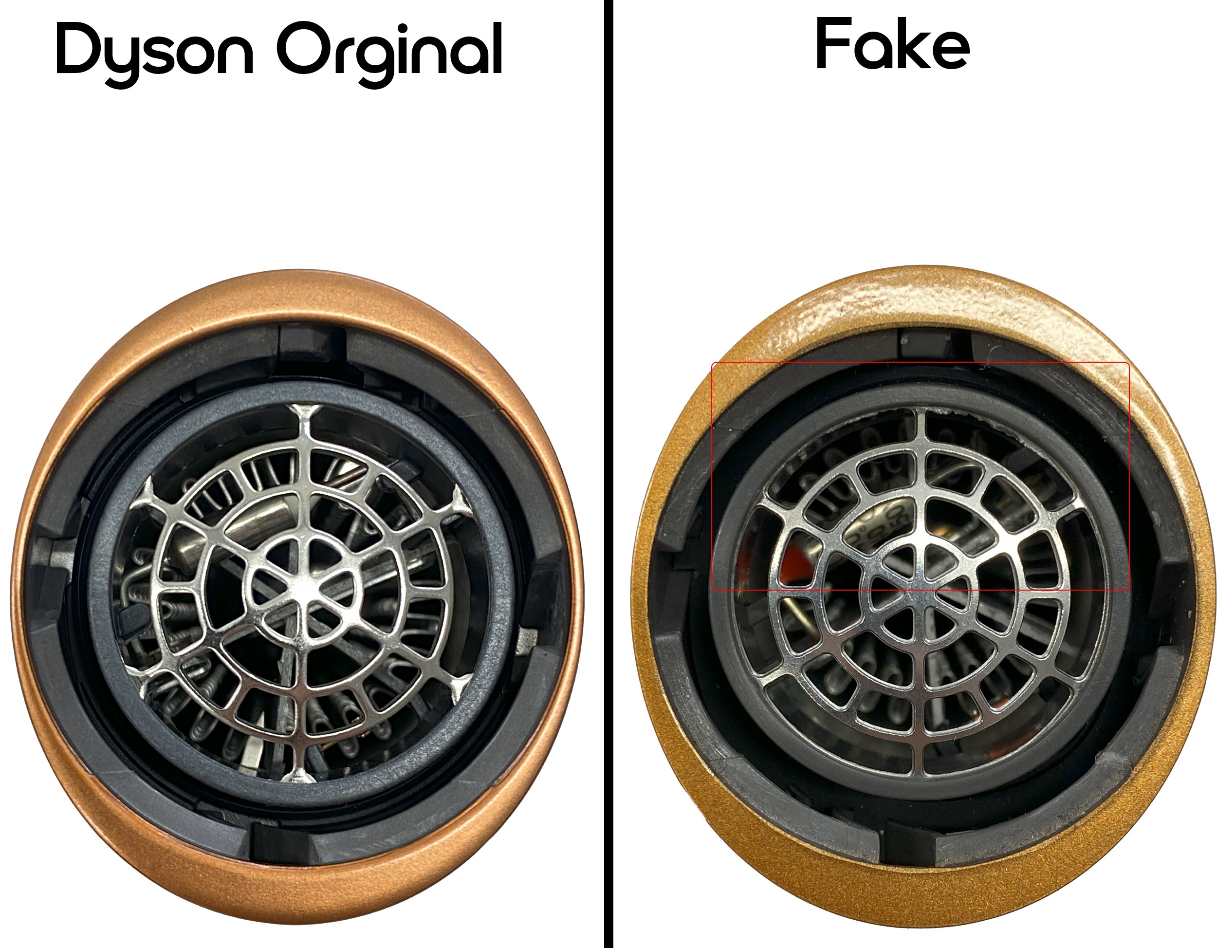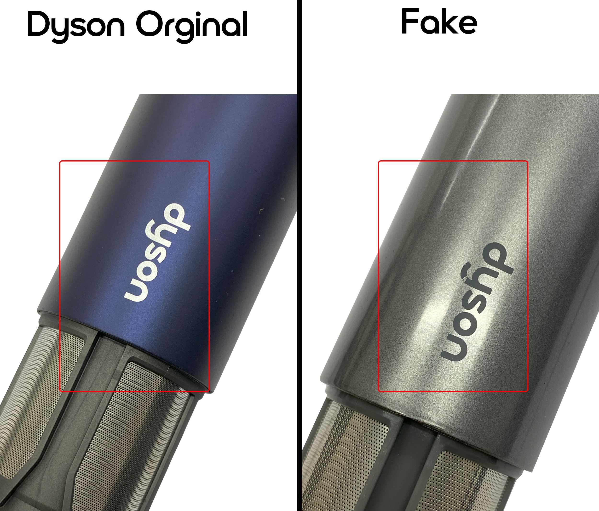 - در نمونه فیک، لوگوی Dyson بهراحتی پاک میشود.