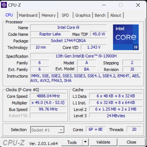 اچ پی برای این لپ تاپ از پردازنده Core i9 نسل ۱۳ اینتل مدل 13900H استفاده کرده است. این پردازنده قدرتمند از ۱۴ هسته برخوردار است که از ۶ هسته با عملکرد بالا و ۸ هسته با عملکرد بهینه استفاده میکند. باید به این موضوع هم اشاره کنیم که ۲۰ ترد هم برای این پردازنده در نظر گرفته شده است. حداکثر فرکانس Core i9 13900H به ۵٫۴ گیگاهرتز می رسد که رکورد بسیار خوب محسوب میشود. البته که این پردازنده از پردازنده گرافیکی Iris Xe Graphics استفاده میکند.