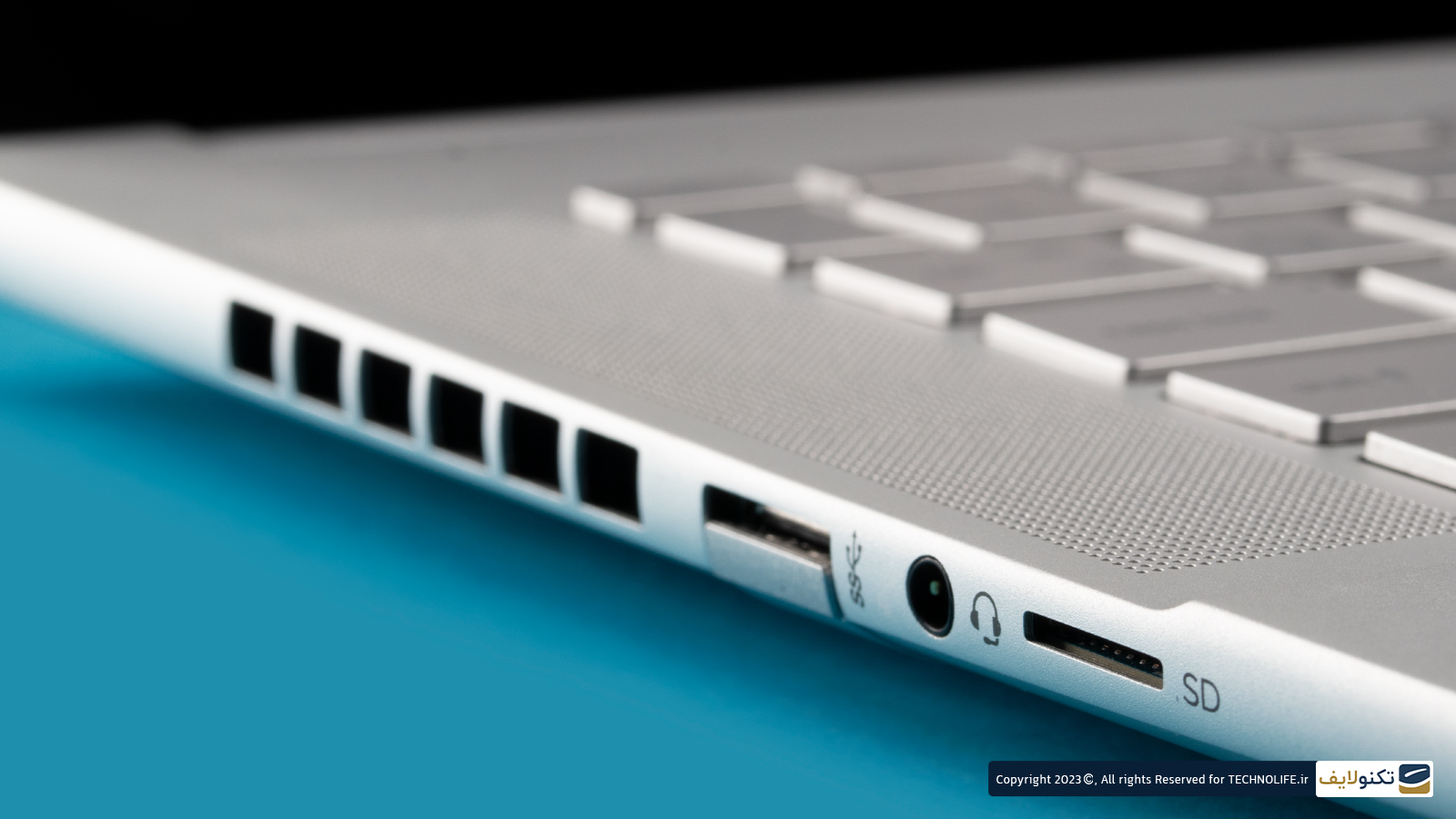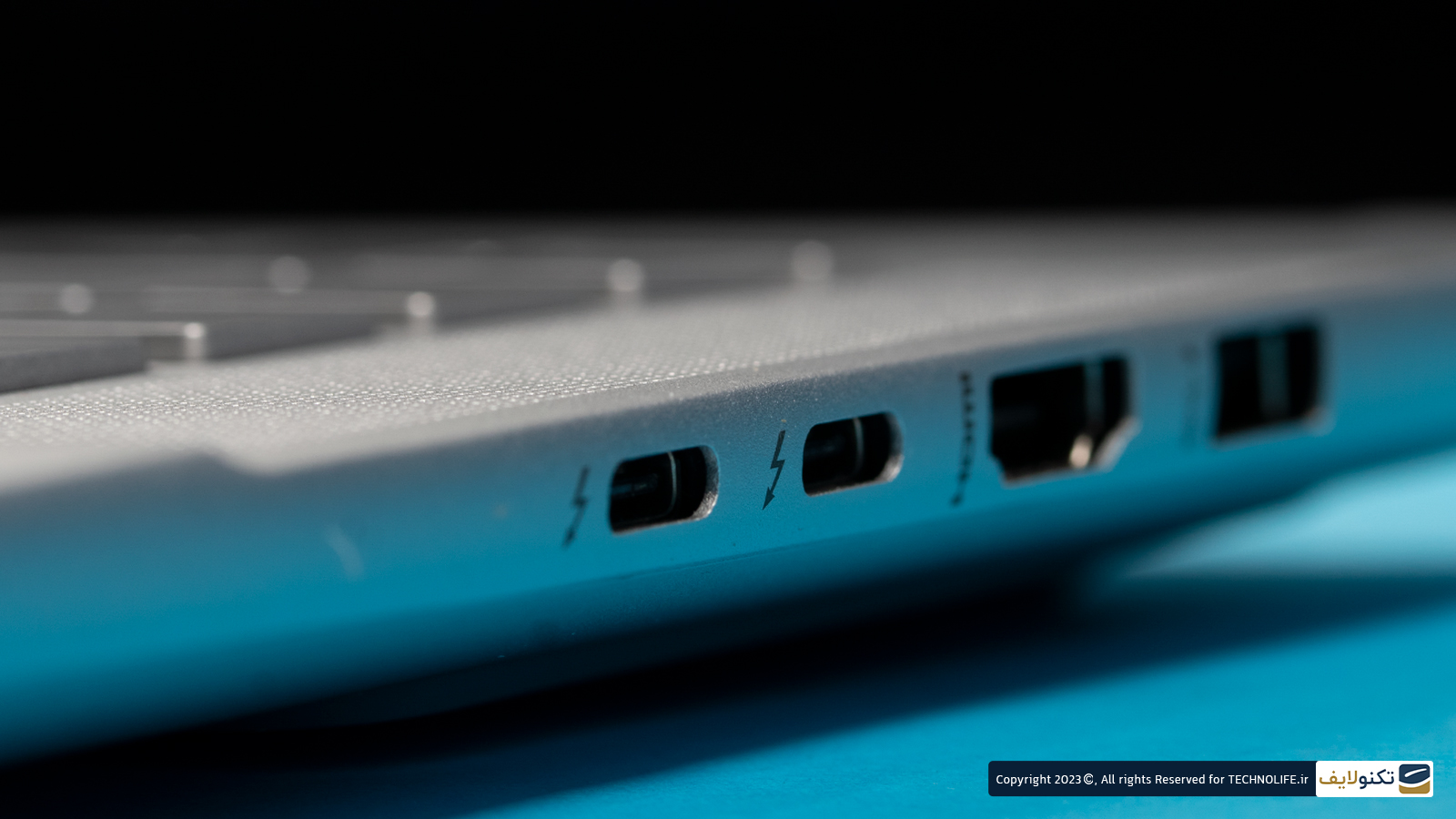 با نگاهی به لبههای ENVY 16 H1023 متوجه قرار گرفتن پورتهای مختلف خواهید شد. روی لبه سمت راست دو عدد پورت Thunderbolt 4 از نوع USB-C و خروجی HDMI دیده میشود. در کنار این پورتها، پورت USB-A هم قرار گرفته است. روی همین لبه پورت شارژ هم دیده میشود.