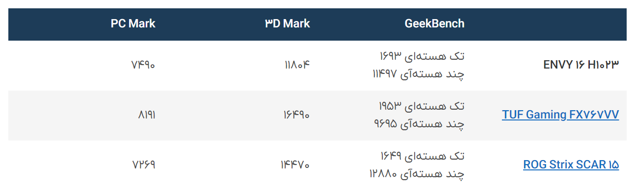 بنچمارکها نشان میدهند که این لپ تاپ واقعا عملکرد قابل قبولی دارد. اما بد نیست که عملکرد بنچمارک این لپ تاپ را با یکسری از لپتاپهای دیگر هم مقایسه کنیم.