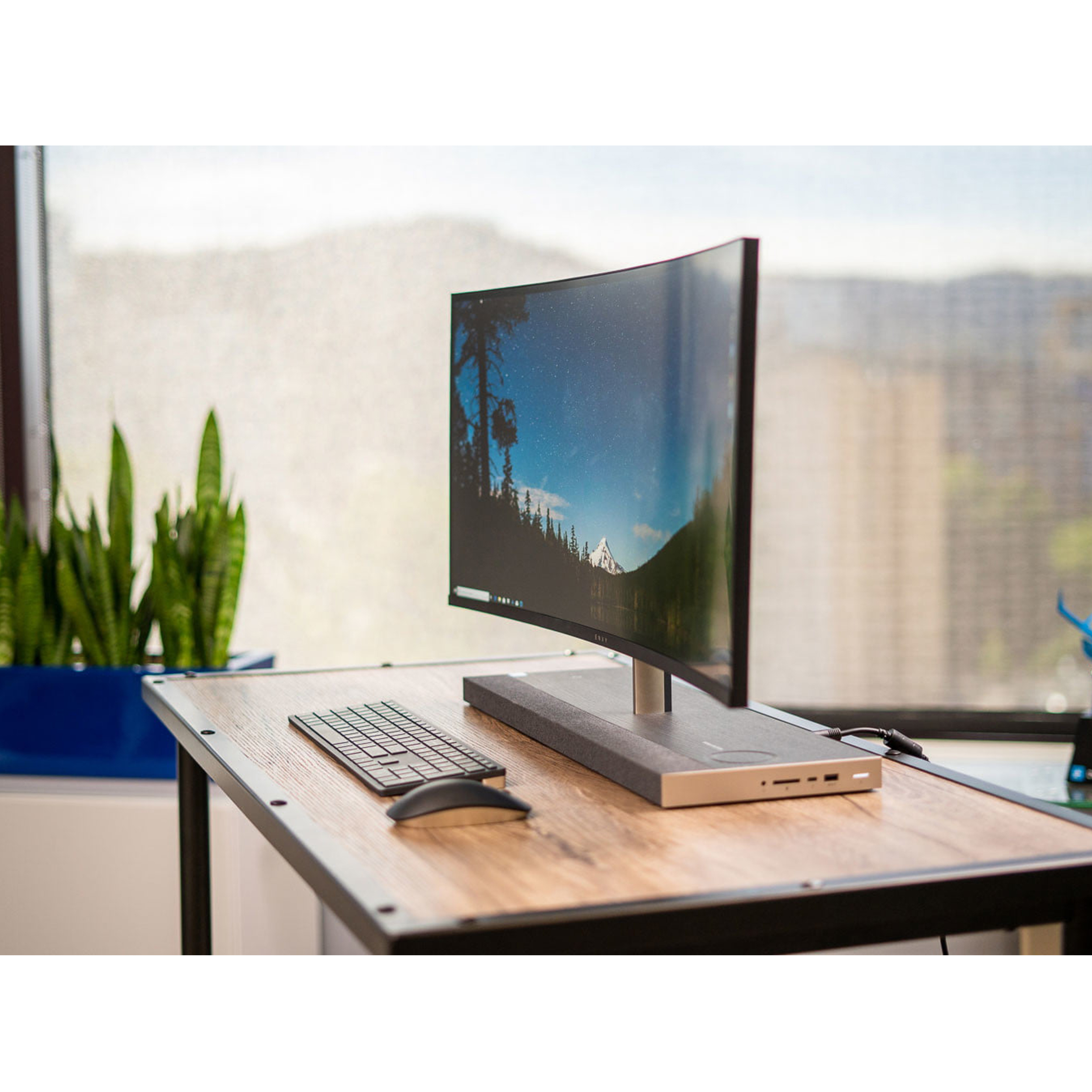 کامپیوترهای یکپارچه یا همان All-in-Oneها معمولا با این فلسفه تولید میشوند که اندازهی مناسبی داشته باشند و با وجود کارایی بالا، بهراحتی روی میز کار جای بگیرند و فضای زیادی را اشغال نکنند؛ اما برای برخی کاربریهای خاص و حرفهای به صفحهنمایشهای بزرگتر از اندازههای معمول نیاز است. کامپیوتر یکپارچهی «اچ پی» مدل «ENVY Curved 34» یکی از همین مدلهای خاص است که صفحهنمایش خمیدهی 34 اینچی دارد. این صفحهنمایش عریض و منحنی دارای پنل IPS با وضوح 3440x1440 پیکسل و روکش مات با نسبت تصویر 21:9 است. این صفحهنمایش علاوه بر کارایی، ظاهر جذاب و خاصی هم به این محصول داده است.در کنار این صفحهنمایش بزرگ، سختافزارهای قدرتمند و بهروزی هم قرار گرفته که کارایی این کانفیگ را بسیار بالا بردهاند. پردازندهی مرکزی نسل جدید Core i7 9700T اینتل ، پردازشگر گرافیکی GeForce GTX 1050 انویدیا با 4 گیگابایت حافظهی اختصاصی از نوع GDDR5، رم 16 گیگابایتی از نوع DDR4 و حافظهی داخلی هیبریدی متشکل از دو ترابایت HDD و 256 گیگابایت SSD، از جمله مشخصات فنی این کالا هستند. وبکم این مدل از نوع HP TrueVision HD است و از 4 عدد بلندگوی قدرتمند ساخت شرکت صاحبنام Bang & Olufsen بهره میبرد. پورتهای خیلی زیادی روی این دستگاه وجود ندارد؛ اما شاهد پورتهای کاربردی USB 3.1، HDMI، LAN، USB Type-C و کارتخوان هستیم. دو پورت HDMI هم یکی از نوع ورودی و دیگری خروجی است و از این طریق میتوان این کامپیوتر یکپارچه را به مانیتورهای خارجی یا تلویزیون متصل کرد یا با اتصال کیس یا لپتاپ، از آن بهعنوان صفحهنمایش استفاده کرد. بدنه ی طرح چوب ، سنسور ولوم ساخت کمپانی Bang&Olufsen و شارژر وایرلس برای گوشی های هوشمند، گواه از به روز بودن طراحی این دستگاه هستند. در مجموع اگر به یک All-in-One بسیار بزرگ و البته قوی نیاز داشته باشید، انتخابهای زیادی پیش روی شما نیست؛ اما Envy Curved 34 با صفحهنمایش خمیده، یکی از آنها محسوب میشود.