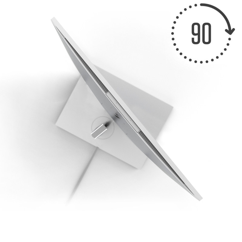 نوع طراحی خاص پایه این محصول ( adjustable-height stand ) به کاربر اجازه میدهد که بهراحتی زاویه قرارگیری صفحهنمایش نسبت به خط دید را تغییر داده و با استفاده از حرکت تلسکوپی آن را در بهترین شرایط قرار دهد که در برخی مکانها مانند فروشگاهها و برنامه های طراحی میتواند کاربردی و جذاب باشد. از آنجایی که این محصول برای کاربری حرفهای طراحی شده از یک صفحه نمایش بزرگ 27 اینچی براق لمسی با تکنولوژی ساخت پنل IPS و کیفیت 2K بهره میبرد که کیفیت، وضوح و شفافیت بسیار خوبی داشته و برای انجام کارهای گرافیکی حرفهای هم یک نمونه مناسب است.