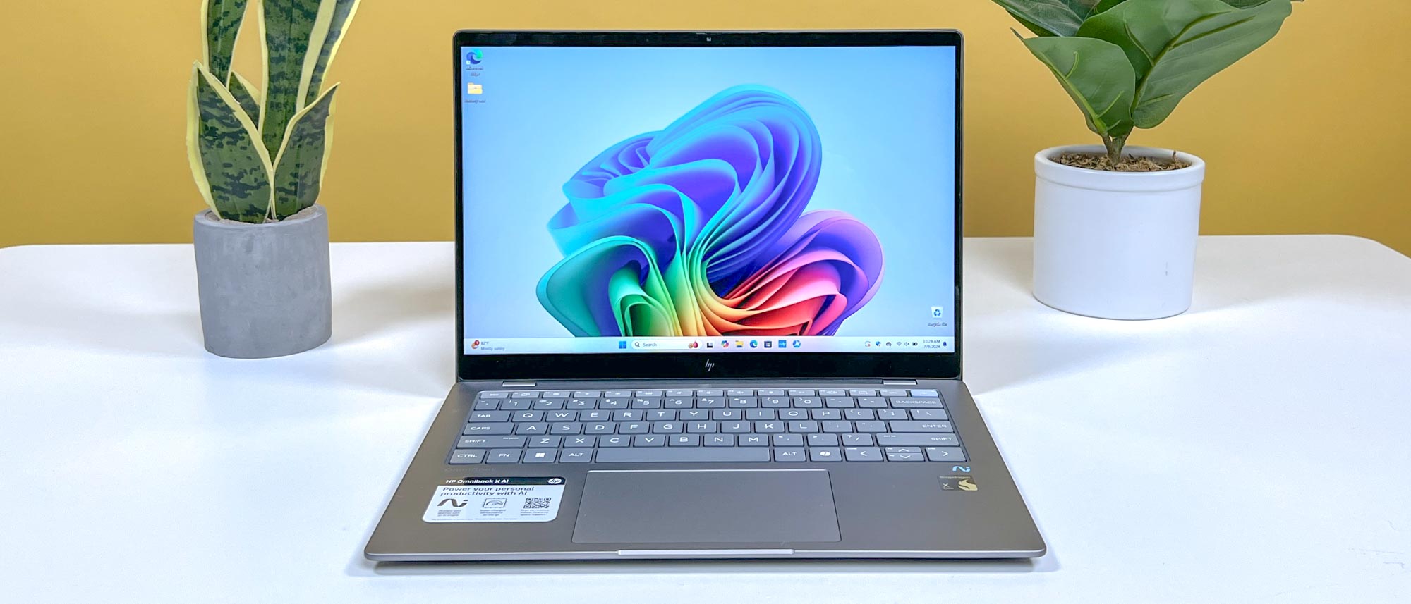 کیبورد OmniBook X از نوع chiclet-style است که برای تایپ کردن طولانیمدت راحت است. همچنین یک دکمه Copilot دارد که با آن می توانید از هوش مصنوعی استفاده کنید.