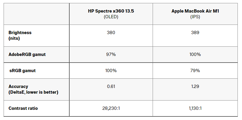 اگر می خواهید بهترین عملکرد را در ویرایش عکس و ویدیو (یعنی از نظر نمایشگر) در کنار کیفیت عالی با محدوده دینامیکی بالا (HDR) داشته باشید، پنل OLED Spectre برنده خواهد شد. هر چند هر دو برای کار با بهره وری ساده عالی هستند.