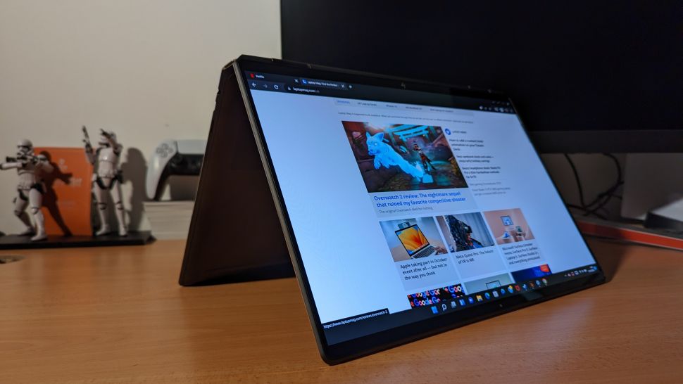 نمیتوانم بگویم نمایشگر آن مانند x360 14 یا Dell's XPS 13 کاملاً «لبه به لبه» است، اما همچنان به اندازهای نازک است که تماشاگران را شگفتزده کند – به خصوص زمانی که بهطور یکپارچه به حالتهای تبلت و خیمه تبدیل میشود. لولای 360 درجه محکم و براق است، و من هیچ مشکلی در خم کردن آن به هر زاویه ای که لازم داشتم نداشتم - بدون تکان خوردن .