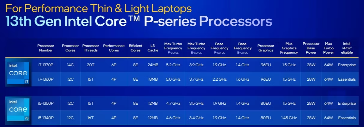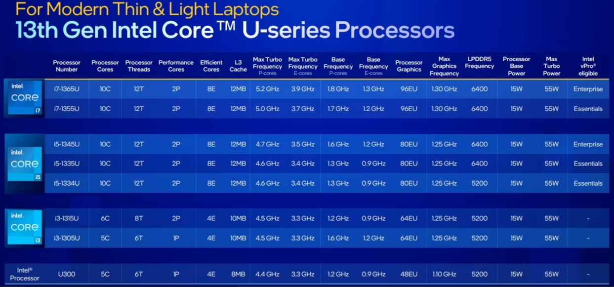 در تصاویر زیر سری کامل سری U و P نسل سیزدهم اینتل را بررسی میکنیم.