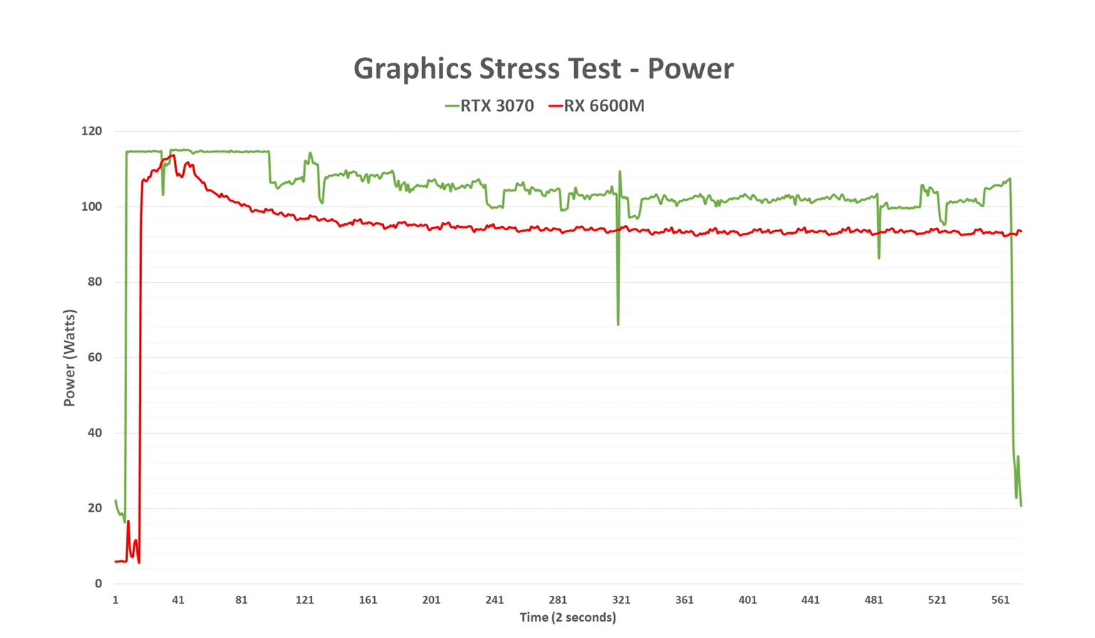گرافیک RX 6600M حدود ۹۵ وات استفاده میکنه و تو لحظات ابتدایی تا ۱۱۵ وات توان میکشه...