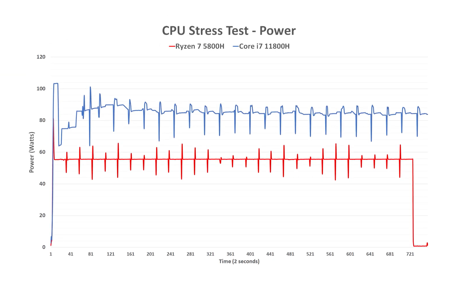 همونطور که میبینید، توان مصرفی پایدار پردازنده AMD حدود ۵۵ واته؛ در حالیکه این عدد برای پردازنده ی اینتل بین ۸۰ تا ۹۰ وات نوسان میکنه...