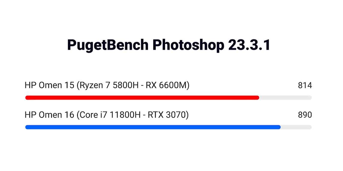 توی تست فتوشاپ، دو تا لپتاپ عملکرد کم و بیش مشابهی داشتند؛ ولی خب، باز هم اینتل به صورت جزئی به حریف برتری داره.. .