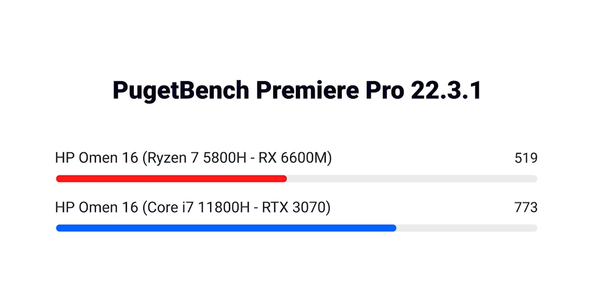 توی تست پریمیر پرو که مواردی مثل پلی بک استریم های 4K ویدیو، خروجی گرفتن از پروژه ها و اعمال افکتها رو شامل میشه، لپتاپ AMD حدود ۳۳ درصد ضعیف تر از رقیب اینتل خودش عمل میکنه...