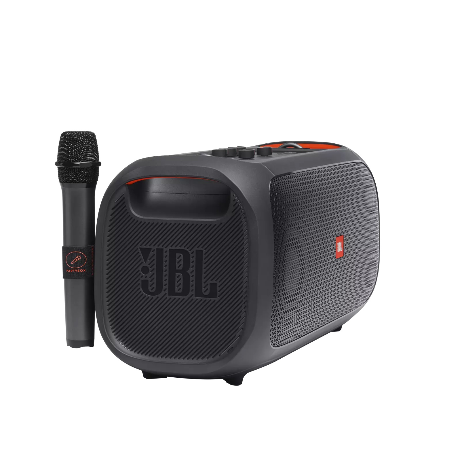اسپیکر بلوتوثی جی بی ال مدل PARTY ON THE GO دارای دو میکروفون است که یک میکروفون درون خود اسپیکر تعبیه شده است و یک میکروفون بیسیم هم همراه اسپیکر هست. این میکروفون برای قابلیت کارائوکه ای که این محصول دارد، تعبیه شده است. بر روی این اسپیکر ولوم هایی قرار گرفته است که شما میتوانید با استفاده از آنها صدای میکروفون یا گیتار خود را تنظیم و اکولایز کنید. برای بهتر استفاده کردن از این اسپیکر بهتر است اپلیکیشن اختصاصی PartyBox را بر روی گوشی که به اسپیکر متصل میکنید، نصب کنید.