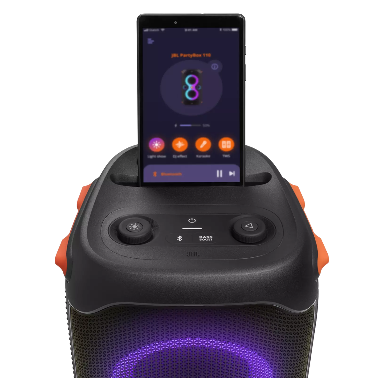 نکته مهم در اسپیکرهای JBL PartyBox 110 در اتصال متنوع آن نهفته است. شما میتوانید این دستگاه را از طریق AUX ،USB یا بیسیم و از طریق بلوتوث 5.1 باکیفیت فوقالعاده متصل کنید که پیشرفتهترین فناوری بلوتوث موجود امروز برای توانایی بهینهسازی کامل پخش فایلهای موسیقی با کیفیت بالا میباشد که دامنه برد آن در فاصله حدود 9 متری اسپیکر تا دستگاه هوشمند شما است.