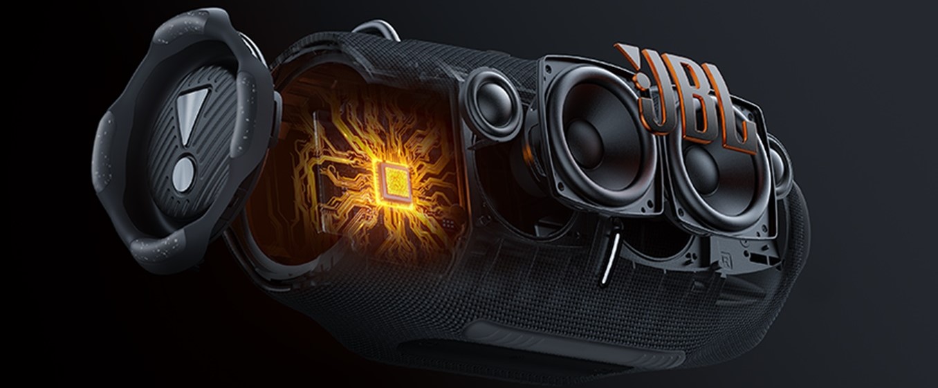 یکی از مهمترین نقاط قوت JBL Xtreme 4، کیفیت صدای بینظیر آن است. این اسپیکر به دو ووفر 70 میلیمتری و دو توئیتر 20 میلیمتری مجهز شده است که صدایی شفاف، پرقدرت و با باس عمیق تولید میکند. ویژگی برجسته این مدل، تکنولوژی AI Sound Boost است که با استفاده از الگوریتمهای هوش مصنوعی، صدا را بهصورت بلادرنگ تحلیل و بهینهسازی میکند. این قابلیت به خصوص در فضاهای باز و پر سر و صدا عملکرد فوقالعادهای دارد. همچنین فناوری JBL Original Pro Sound تجربهای فراگیر از صدا ارائه میدهد.