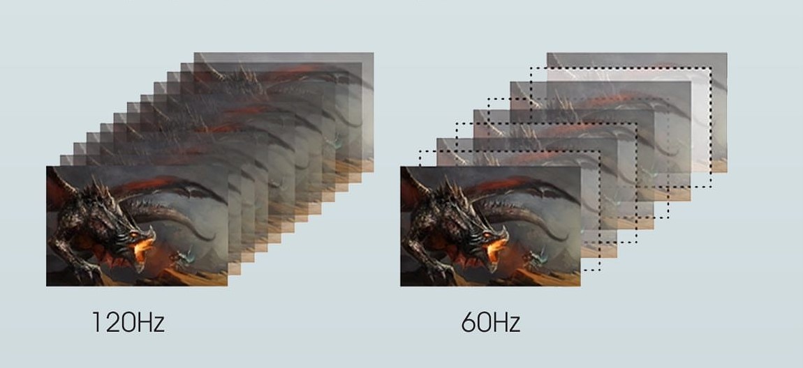 از آنجا که Refresh Rate و Frame Rate با یکدیگر ارتباط نزدیکی دارند، اگر تصویری با فریم ریت پایین یا معمولی ارائه شود در یک نمایشگر 60 هرتزی و یک نمایشگر 120 هرتزی یکسان نمایش داده میشود و در عین حال تصاویری هم که دارای فریم ریت بالایی هستند در نمایشگرهایی با نرخ نوسازی پایین تر محدود میشوند، مثلا به صورت بریده بریده یا بسیار کند پخش میشوند.